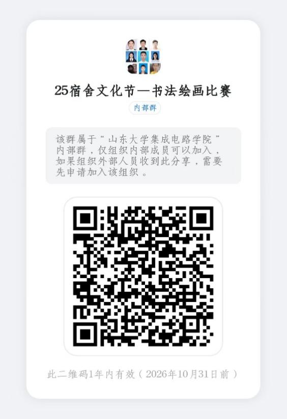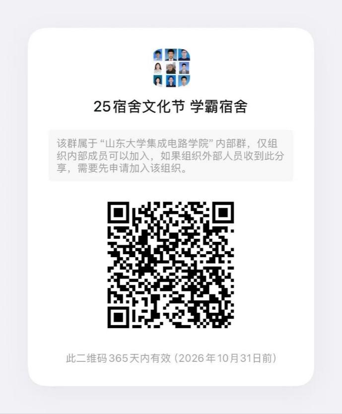 为进一步弘扬新时代山大文化,加强宿舍文化建设,丰富学生校园文化生活,强化文化引领,着力构筑“学在山大、快乐成长”的特色育人体系,促进学生德智体美劳全面发展,决定开展集成电路学院2025年学生宿舍文化节。现将有关事项通知如下: