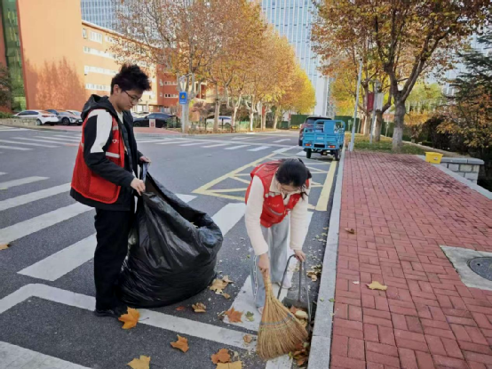 为深入践行志愿服务理念,培养学生的环保意识与团队协作精神,营造整洁优美的校园环境,11月9日下午,集成电路学院学生会实践服务部联合兴隆山校区和软件园校区管理办公室,山东华特商隆物业有限公司,山东大学青年志愿者联合会等单位,在学院主干道开展了"集金秋落叶 成洁净校园"主题落叶清扫志愿服务活动。学院志愿者积极参与,通过协作清扫落叶,为校园秋日增添了一抹温暖的劳动亮色。