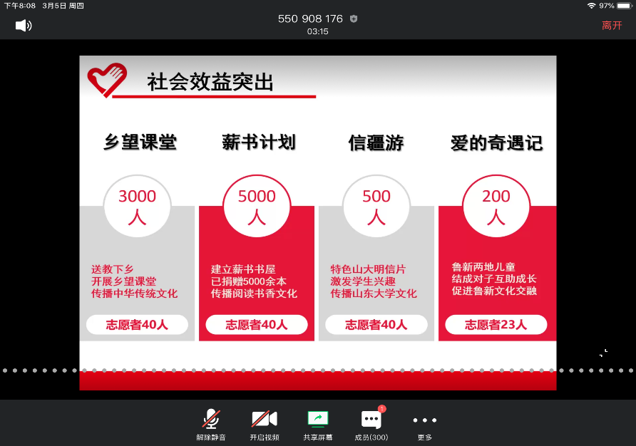 在这个特殊的冬天,我们见证了无数的温暖,无数的“最美逆行者”在这场没有硝烟的战役中义无反顾,用行动书写着人间大爱,他们用自己的实际行动阐述着新时代的“雷锋精神”。在全国第57个学雷锋纪念日到来之际,我们山大人也正用自己的实际行动积极响应国家号召、时代号召。在这次团课中,我们与山大优秀志愿服务组织代表、先进志愿者个人连线,了解山大人是如何在新时代发扬雷锋精神、劳动精神。在他们的分享中,我们看到了山大人的爱与真挚,作为山大的一份子,我们理应向他们学习,“学无止境,气有浩然”,传承新时代的雷锋精神,为抗疫献出自己的一份力,属于山大人的青年之力。