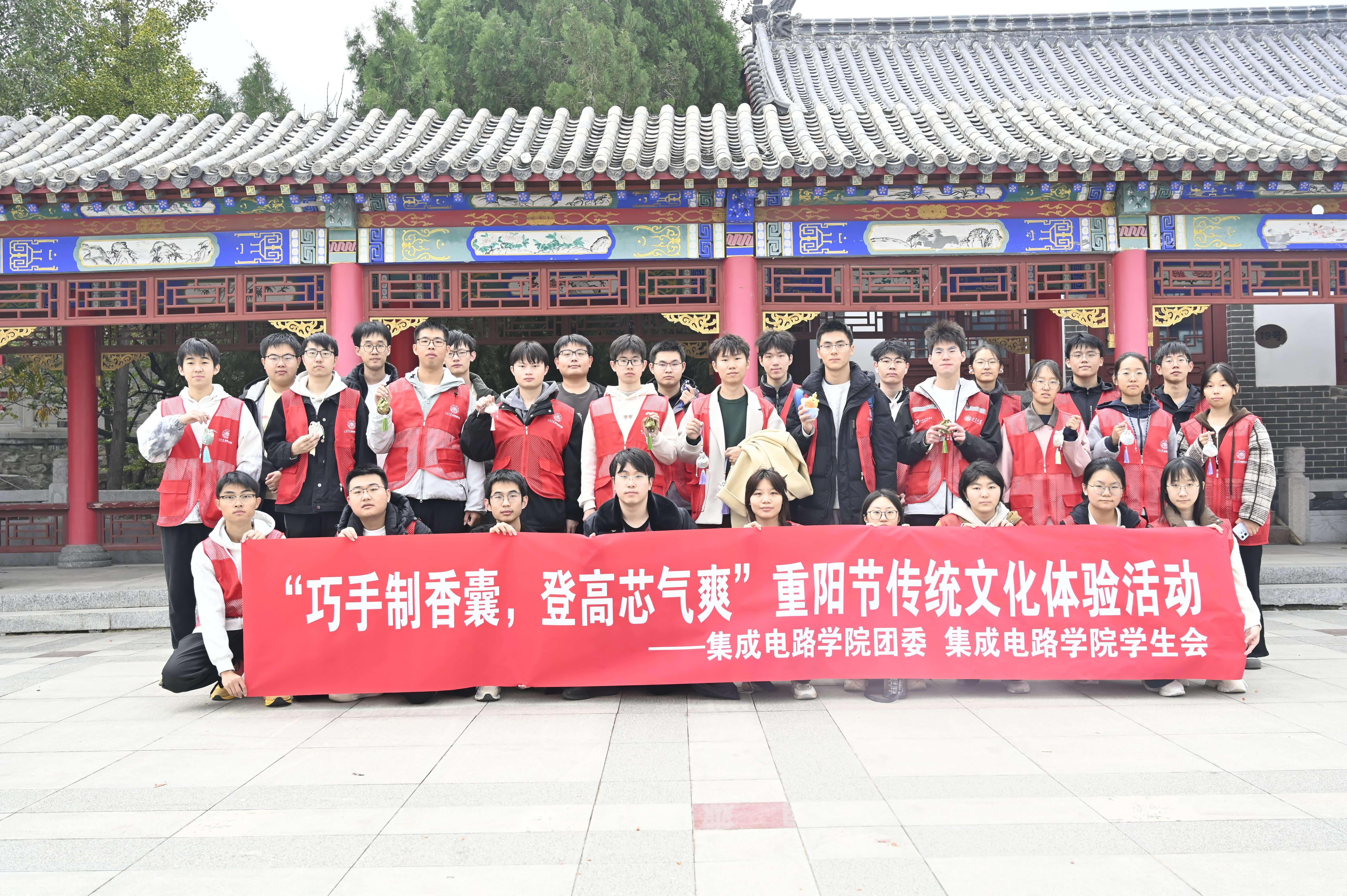 农历九月初九,重阳佳节,为弘扬中华优秀传统文化,集成电路学院学生会实践服务部在学院团委的指导下于10月26日上午举办“巧手制香囊,登高芯气爽”传统文化体验活动,组织同学们亲手制作香囊、结伴登高望远,在实践体验中感悟节日内涵。巧手制香囊,佳节祈安康重阳制香囊,是为了祈福健康平安、避邪驱瘟。活动现场,同学们在负责人引导下领取香料与布料,学习传统香囊制作方法。填装香料、系紧束口、点缀流苏,大家细致操作,...