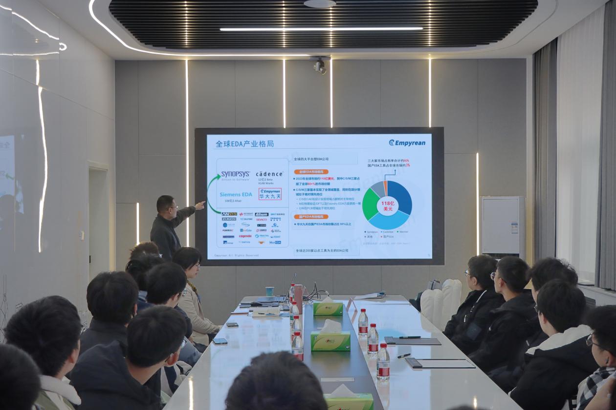 随后,李益明与在场学生进行了专题交流。他围绕华大九天在EDA产品体系、产业生态建设方面的举措展开介绍,鼓励同学们夯实专业基础,关注产业动态,积极投身集成电路工具链的自主研发事业。