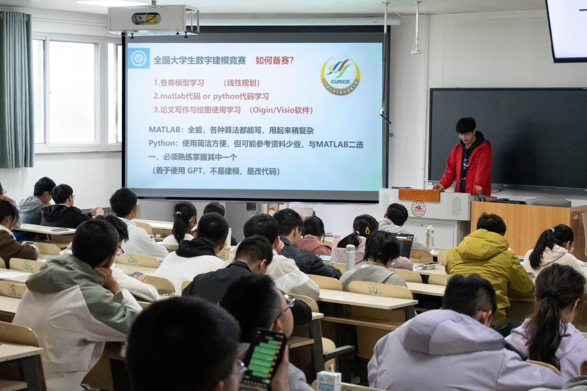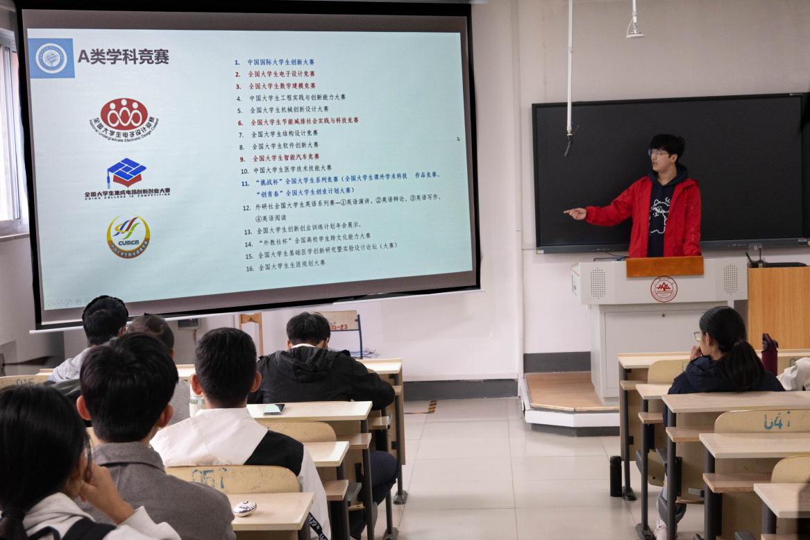 首场分享会以“A类赛事介绍与入门指南”为主题。主讲人王鹏锦紧扣2025级新生实际需求,围绕“快速认知+高效参与”双主线,系统解析A类赛事的分类、赛制与备赛节奏,从赛事选择到材料准备逐步讲解,帮助新生踏实迈出竞赛第一步。