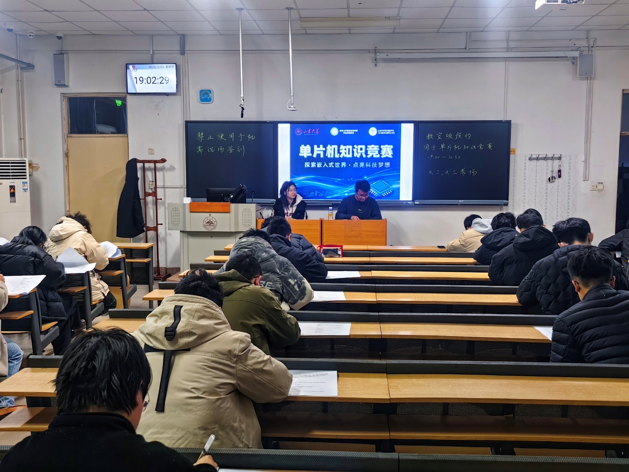 为深化同学们对嵌入式技术的理解, 搭建理论学习与交流的平台 ,以赛促学激发科创热情,12月 5 日,由山东大学集成电路学院学生 科学技术 协会、“芯”发展学业指导工作站联合 举办 单片机知识竞赛,吸引全院科创爱好者踊跃参与。