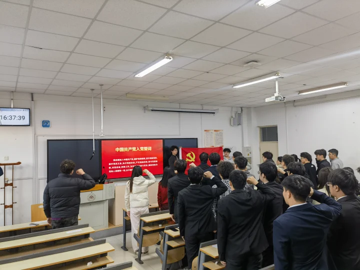 随后,党员大会充分讨论并审议预备党员转正事宜,全体党员重温入党誓词。裴玲杰强调,转为正式党员是政治生命的新起点,要深入学习贯彻党的理论知识,坚持以习近平新时代中国特色社会主义思想为指导,切实强化责任担当,主动服务同学,以实际行动践行党的根本宗旨,充分发挥党员先锋模范作用。