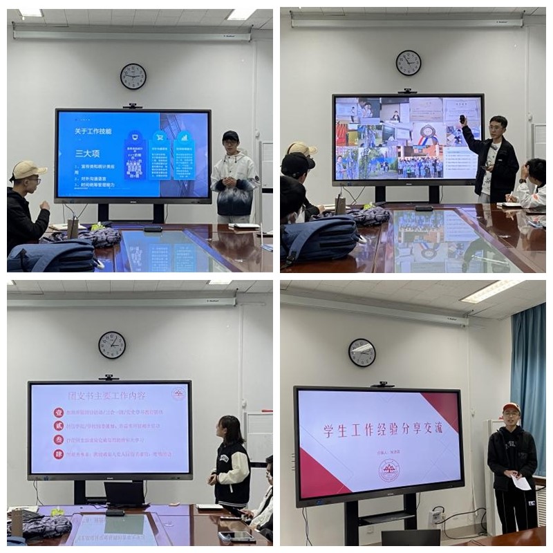 接着,2021级各班主要班干部分享了班级服务与管理工作的经验与教训。微电一班团支书张皓程、集成一班班长孙铭骏、微电二班班长王嘉睿、集成二班班长朱沛霖分别进行各班班级管理与服务的经验分享。他们从班集体概念、凝聚力打造、集体活动组织、学生工作概况、常见工作软件技巧、班团分工协调等多个方面展开,在回顾过去一年的工作亮点的同时也反思了不足之处,为大一新生带来了一场内容丰富、针对性强的经验分享。