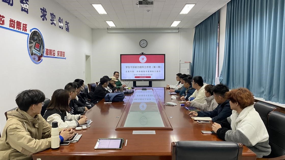 为更好促进本科学生干部工作能力提升,提升学院学生工作整体性和契合度,11月6日,微电子学院学生干部能力提升工作坊第一期在学院会议室顺利举行,活动由本科生辅导员封建帅主持,2021级和2022级本科各班主要学生干部参加活动。