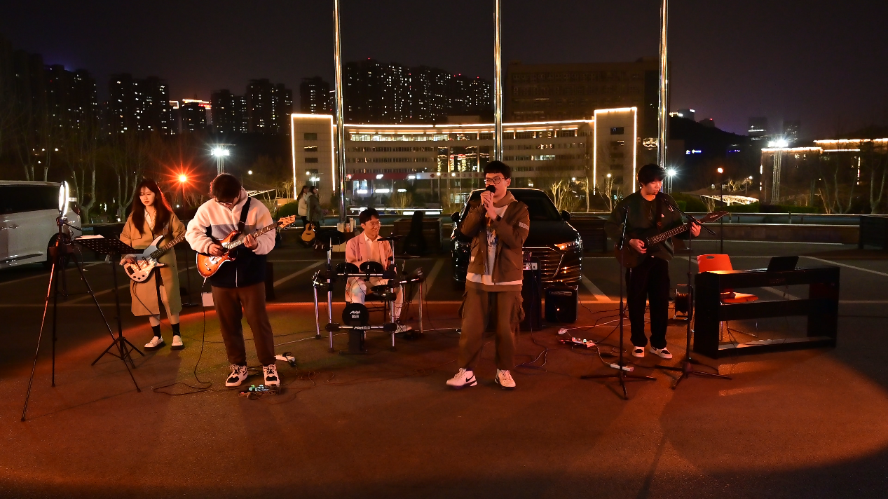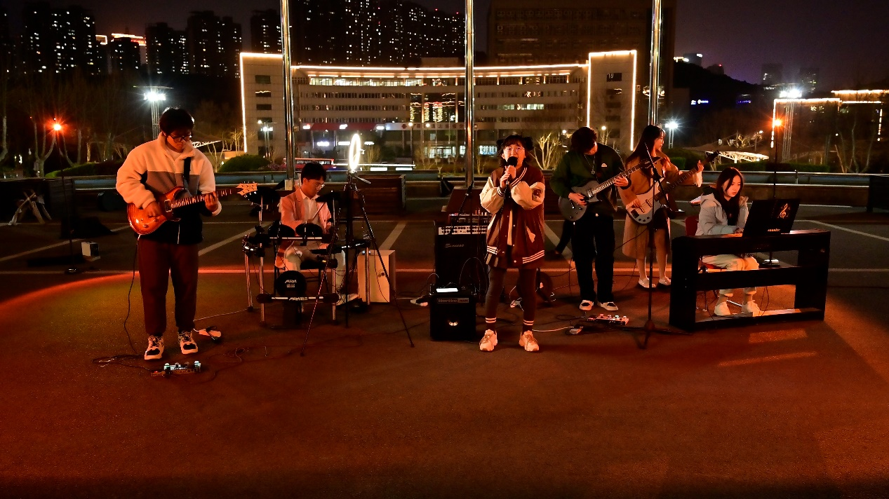 本次音乐会,微电子学院VCC乐队初次登场亮相。VCC乐队成立于2022年5月,包含键盘手、鼓手、吉他手、贝斯手、主唱等。音乐会开场,由乐队成员樊宜多、谷文涛、郭海川、李梓荣、王景禾、张若扬、于润芊、叶志远等同学带来的歌曲《想去海边》,拨开了夜晚的静谧。在本次音乐会当中,VCC乐队共为同学们带来了《蓝莲花》、《海阔天空》等共五首歌曲,用琴弦和鼓点演绎着春日的美好。