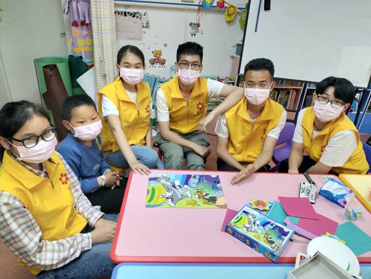 下午两点十分,志愿者们到达目的地——济南千佛山医院新阳光儿童病房。此时孩子们还未抵达教室,于是在老师的指导下,志愿者们纷纷穿上马甲,洗净双手,戴上口罩,打扫教室,并对教室的桌椅进行消毒。这节课,志愿者带上孩子们开始了一场世界之旅——向他们介绍了北京故宫、巴黎圣母院、罗马斗兽场、巨石阵。志愿者讲解了这些建筑的独特、神秘之处,并向孩子们提问,孩子们一方面听得津津有味,一方面勇敢的说出自己的想法。手工课是带孩子们做两个小东西——纸手表、纸陀螺。小一些的孩子做了简单的纸手表,大一些的孩子尝试了纸陀螺。一位妈妈在志愿者的指导下,学会了折纸陀螺,并做了一个纸陀螺给自己的孩子。之后,志愿者们与孩子们一起完成了一份300块碎片的拼图,大家都成就感十足。