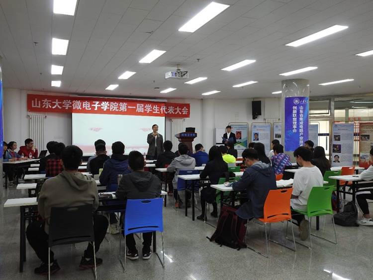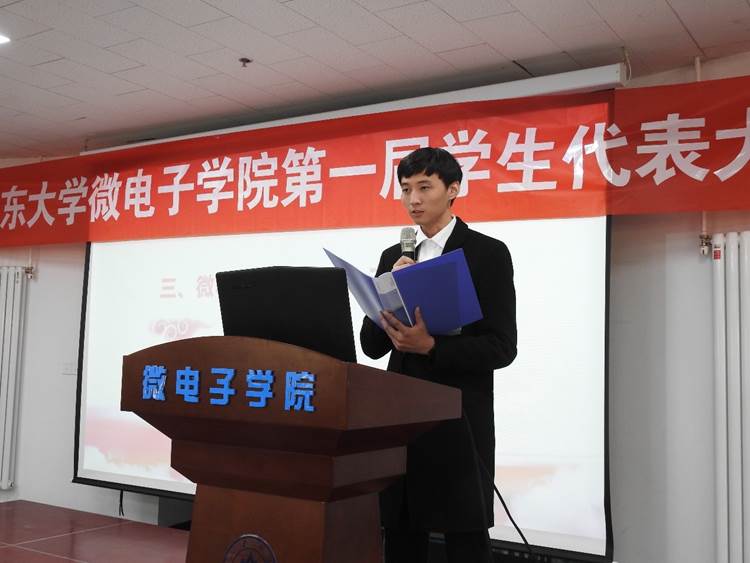 为全面贯彻党的十九大精神及全国第十八次团代会、学校第十四次党代会精神,2019年4月18日下午14时整,微电子学院第一次学生代表大会在微电子学院楼大厅成功召开。本次大会主题是:自我完善 自我发展。山东大学微电子学院党委书记王卿璞,党委副书记卢士涌,院办主任张国莉出席会议,微电子学院学生会主席张松主持本次会议。共计21位学生代表参加了本次大会,大会选举产生了微电子学院第一届学生代表大会常任代表委员会。