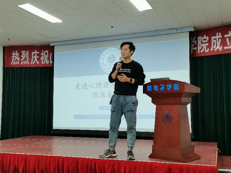 为帮助学院2020级学生适应大二学年的学习生活,缓解学生面对新学期快节奏生活的心理压力和焦虑情绪,10月15日微电子学院于学院大厅举办“新学期,你准备好了吗”走进心灵心理讲座。学院2020级本科生辅导员裴玲杰主讲,学院2020级全体本科生参加。